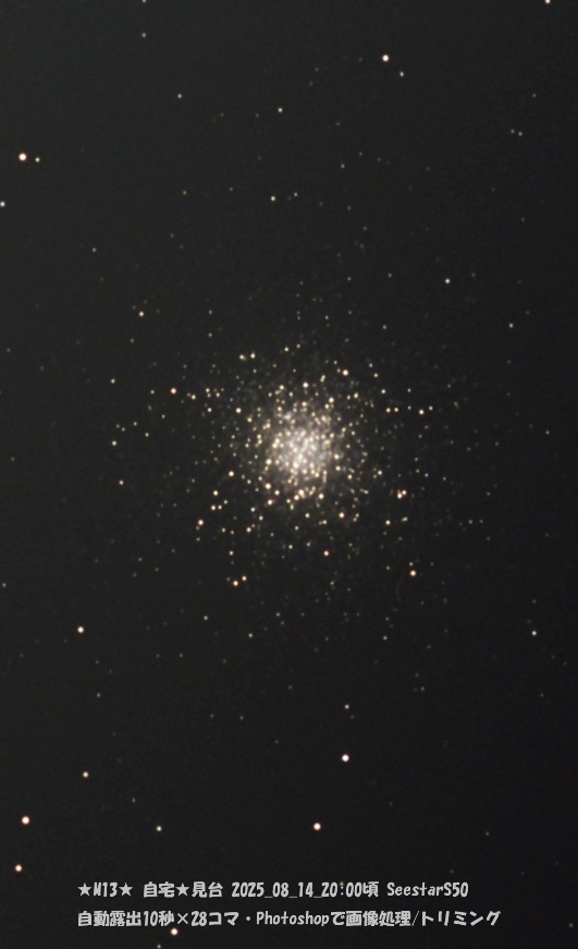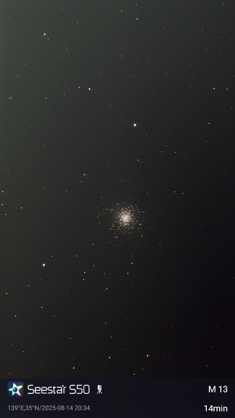 M13を試写してますが、自宅の光環境が悪いのかココ迄です。フラット補正も出来るとかで、その内にやってみます。撮影者 谷川氏 | |