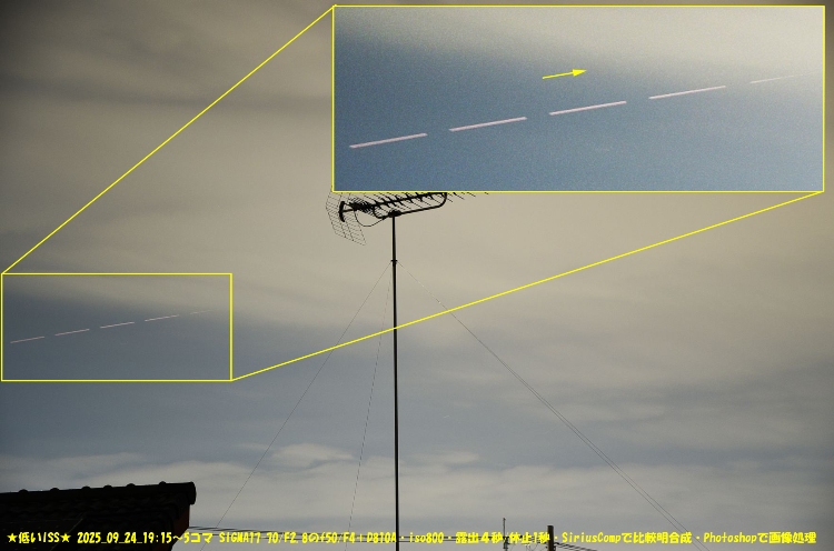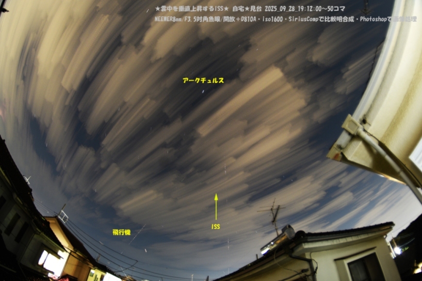 ここでは、川越天文同好会の会員の画像を集めました。 「ISSシリーズ202509」 雲が多いながらもISSが見えました。撮影者 谷川氏 珍しく晴れているダ埼玉ですが、低いとこを飛ぶISSも見れました。※YouTubeにupしました。撮影者 谷川氏 雲が多くて多くを写せませんでした。撮影者 谷川氏 薄雲がかなり目立ちましたが、他の衛星を含めて見れました。撮影者 谷川氏