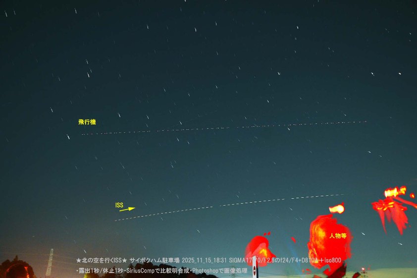 今夜の観望会は良い天気に恵まれて多くの天体が見れました。特にISSが2度も通過して観察出来、幸運でした。撮影者 谷川氏